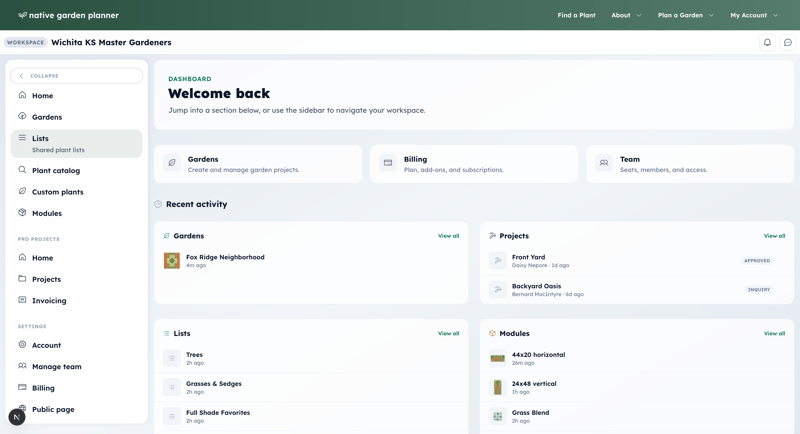 Native Garden Planner started as a free tool for anyone to design a native garden. Now it scales with you — from a single backyard project to a shared library for your organization, to a full client workflow for your design practice.